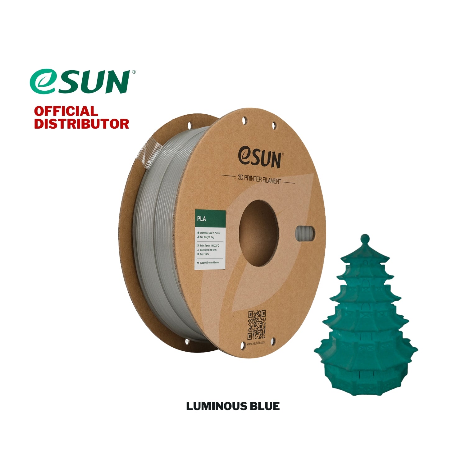Description: The eSUN PLA Luminous filament is a specialty PLA blend enhanced with phosphorescent particles, allowing your prints to glow...