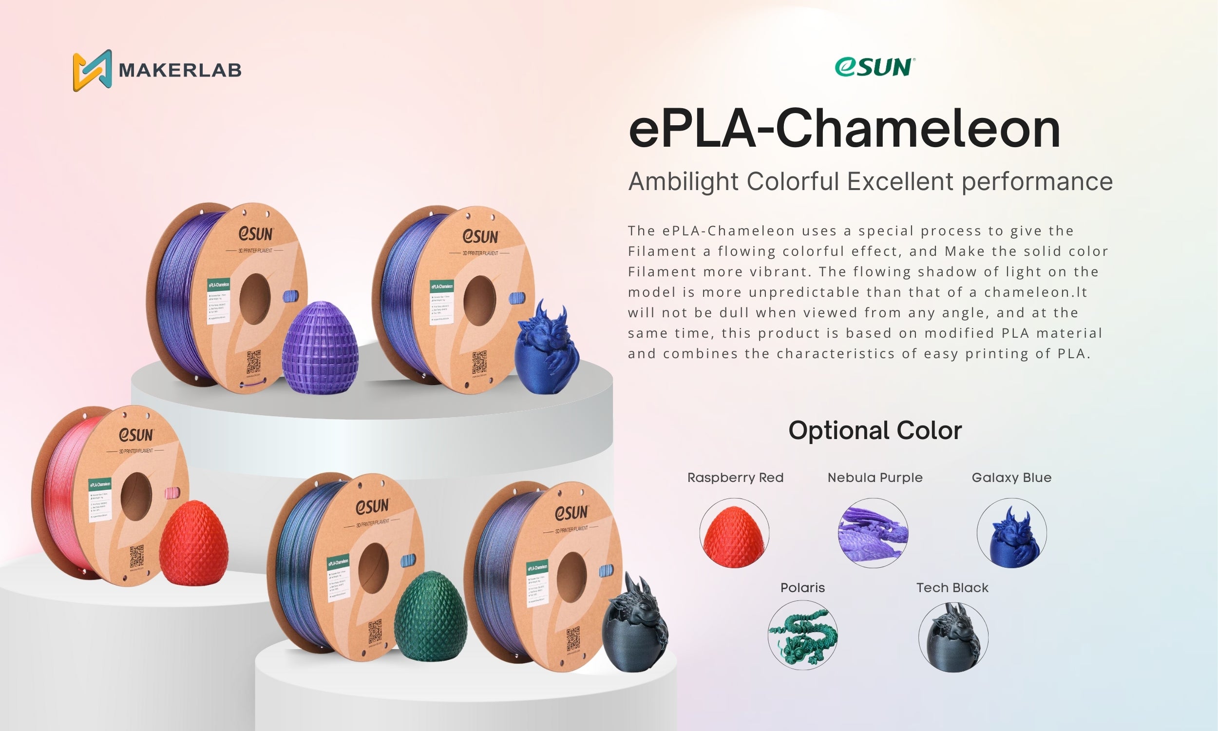 THE K5™ PLA M is a PLA based printing material with excellent matte effect. Inheriting the excellent environmental protection and...