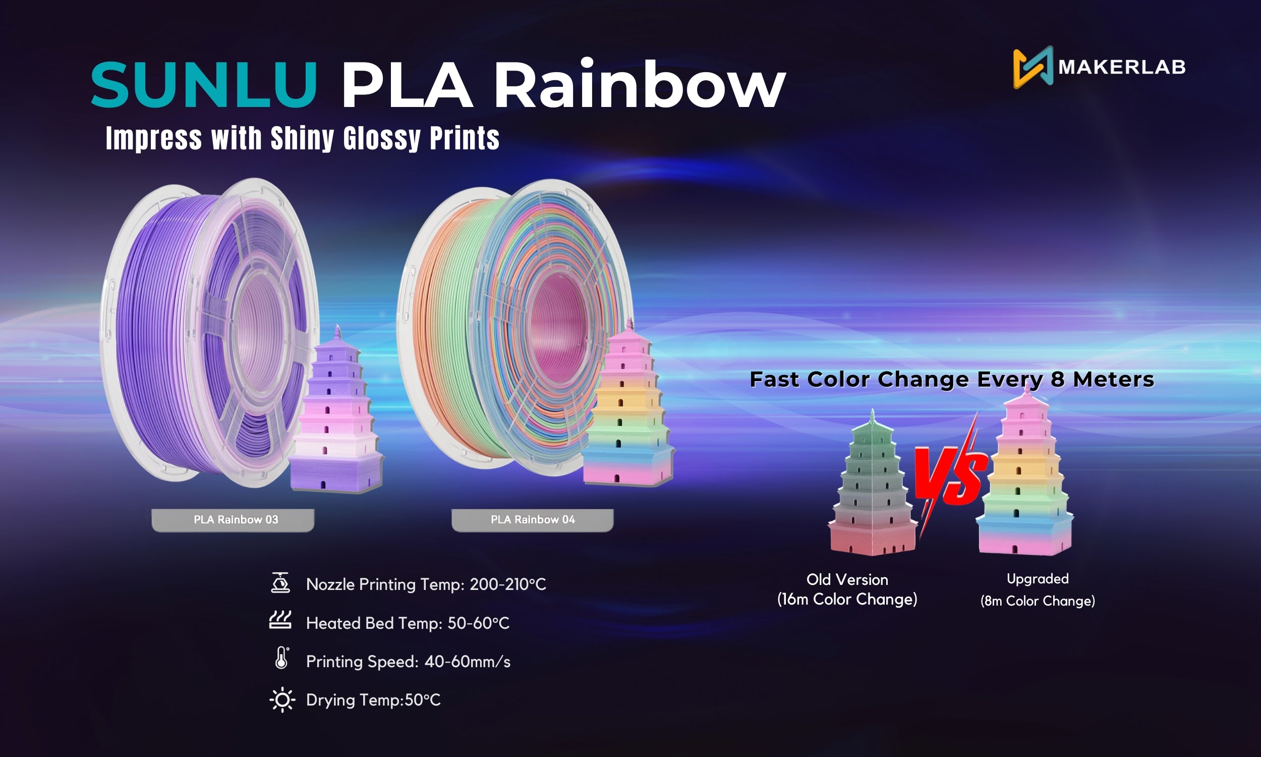 High Speed Printing with Low temp SUNLU 1.75mm PLA Meta 3D printer filament(± 0.02mm Tolerance)smooth squeeze. PLA Meta filament is...