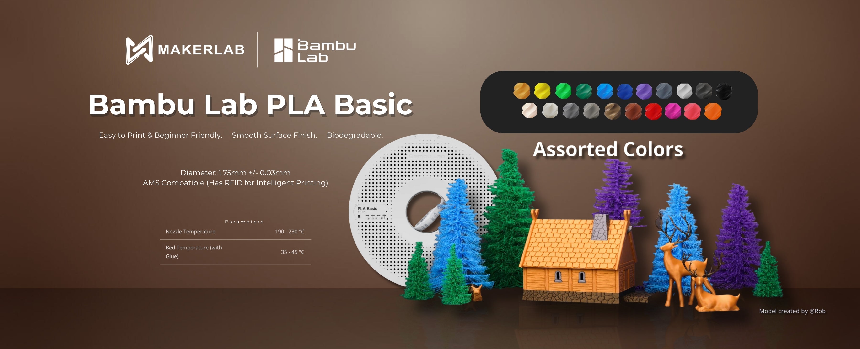 Product Features Easy to Print & Beginner Friendly Smooth Surface Finish Biodegradable Diameter: 1.75mm +/- 0.03mm New-user Friendly & Easy...