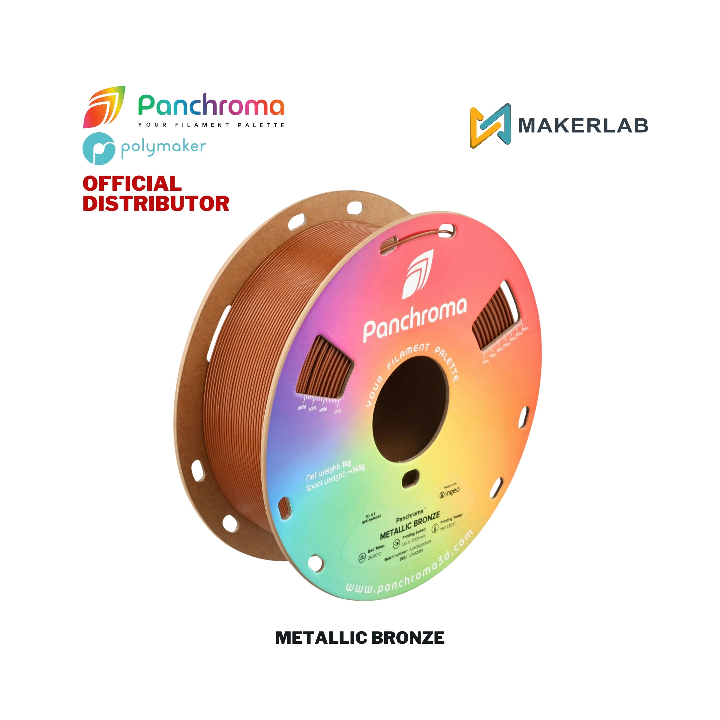 Description: Polymaker Panchroma™ Metallic PLA Filament is designed to give your 3D prints a lustrous, metal-like sheen. This PLA-based filament...