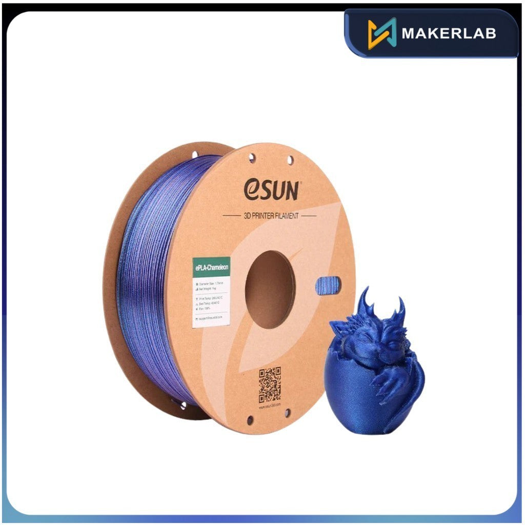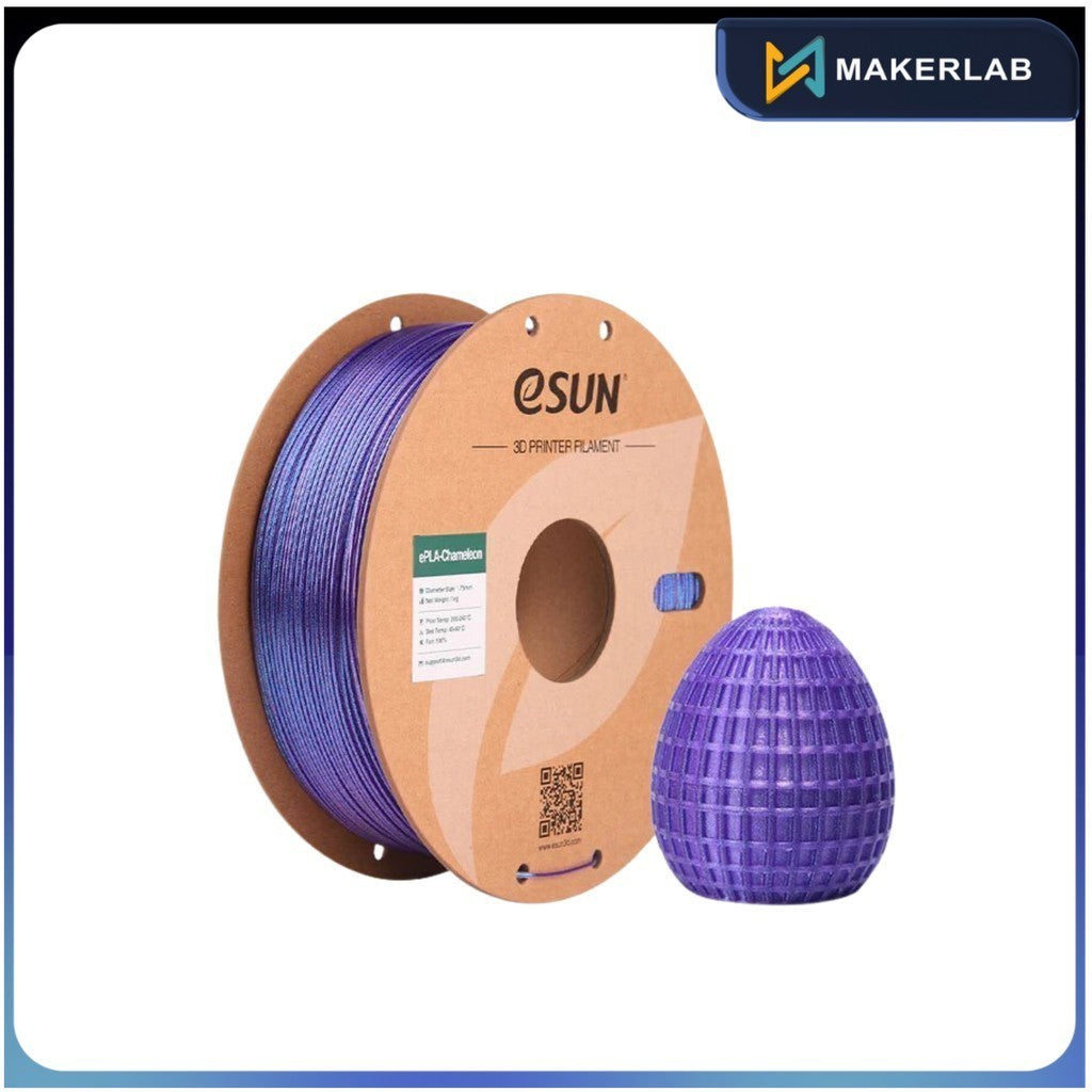 Description eSUN's ePLA‑Chameleon is a vivid, color-shifting PLA filament that responds to light and viewing angle, creating stunning iridescent effects....