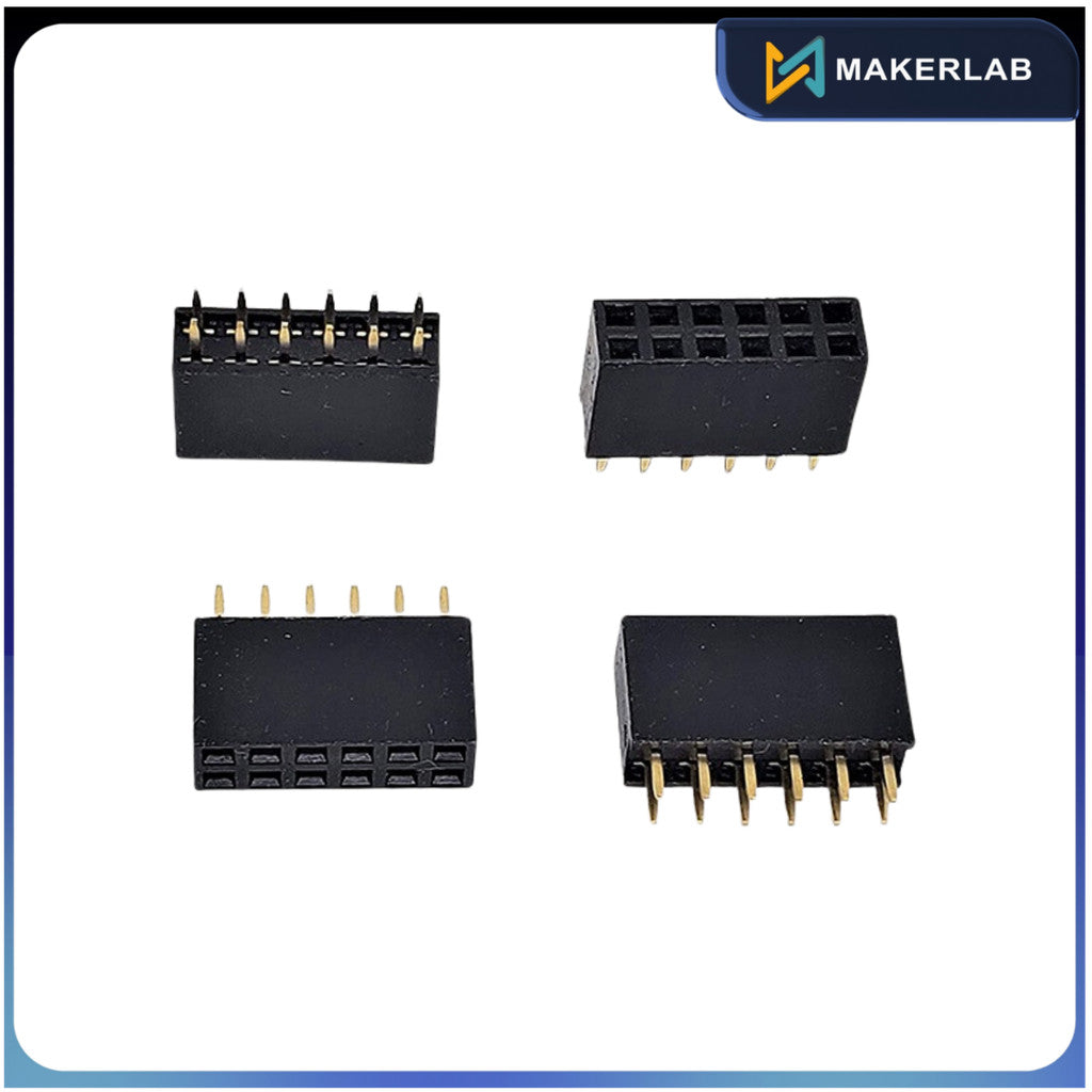 This connector is a double-row, 12-pin (2×6), straight female header strip designed to match 0.1" male headers. OverviewThese 0.1" straight...