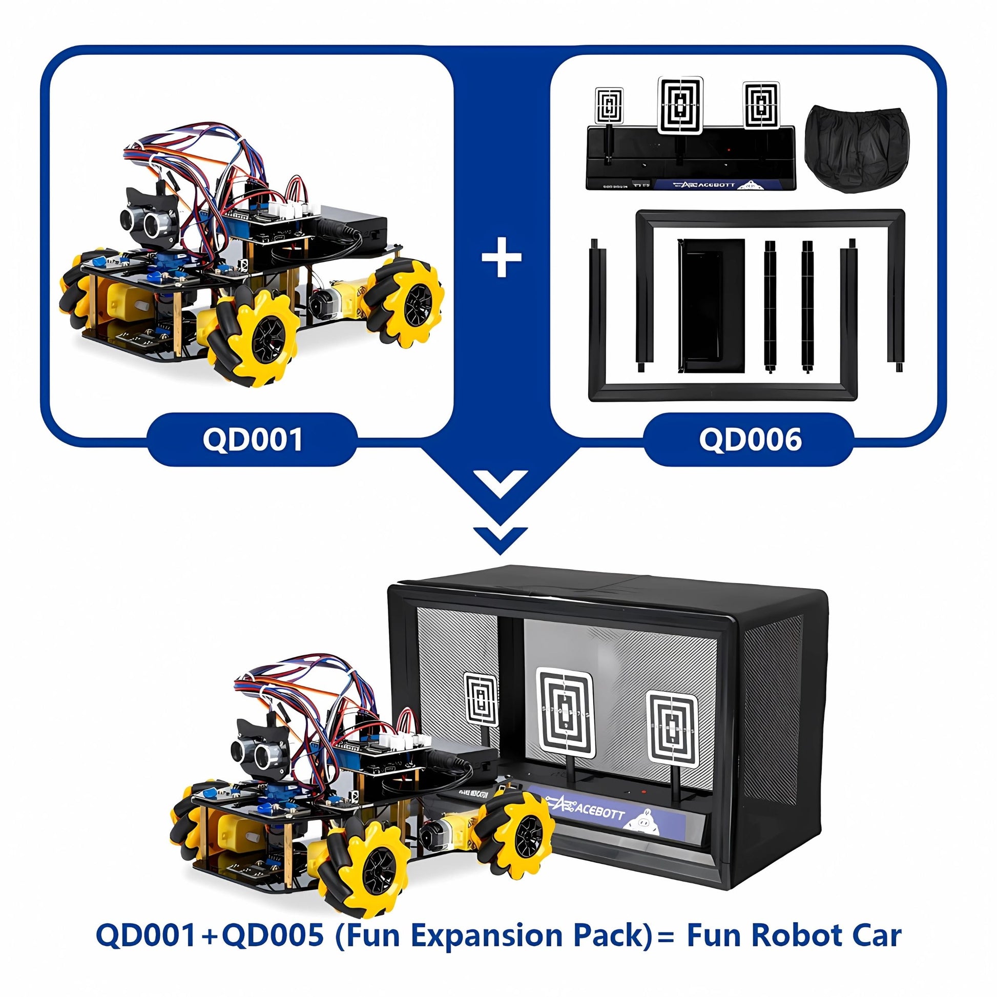 The ACEBOTT Electric Scoring & Shooting Target Expansion Pack (QD006) is an innovative and interactive accessory designed to complement your ACEBOTT ESP32 Smart Robot Car Kit (QD001), particularly when paired with the ACEBOTT Water Ball Launcher Expansion Pack (QD005). This target system provides an engaging way to practice aiming, test accuracy, and add a competitive element to your robotics projects, bringing an arcade-like experience to your learning environment. It is a smart target system that automatically detects hits and provides real-time feedback. When a projectile (water ball from the QD005 launcher) successfully strikes the target, it registers the hit, accompanied by sound effects. This feature transforms basic shooting practice into a dynamic game, allowing users to track their progress, challenge friends, and refine their robot's aiming capabilities. It's an excellent tool for enhancing hand-eye (or robot-eye!) coordination, programming precise movements, and adding a layer of fun to STEM education.