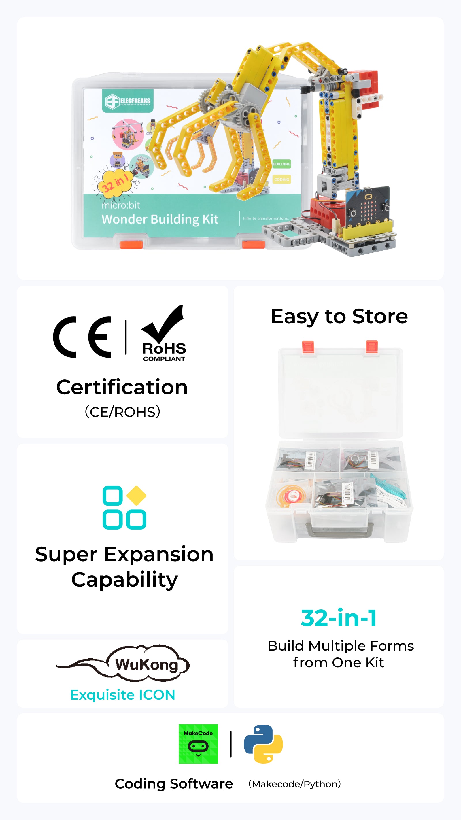 Wukong 32 in 1 wonder building kit supports multiple programming methods (Makecode/Python/Javascript)